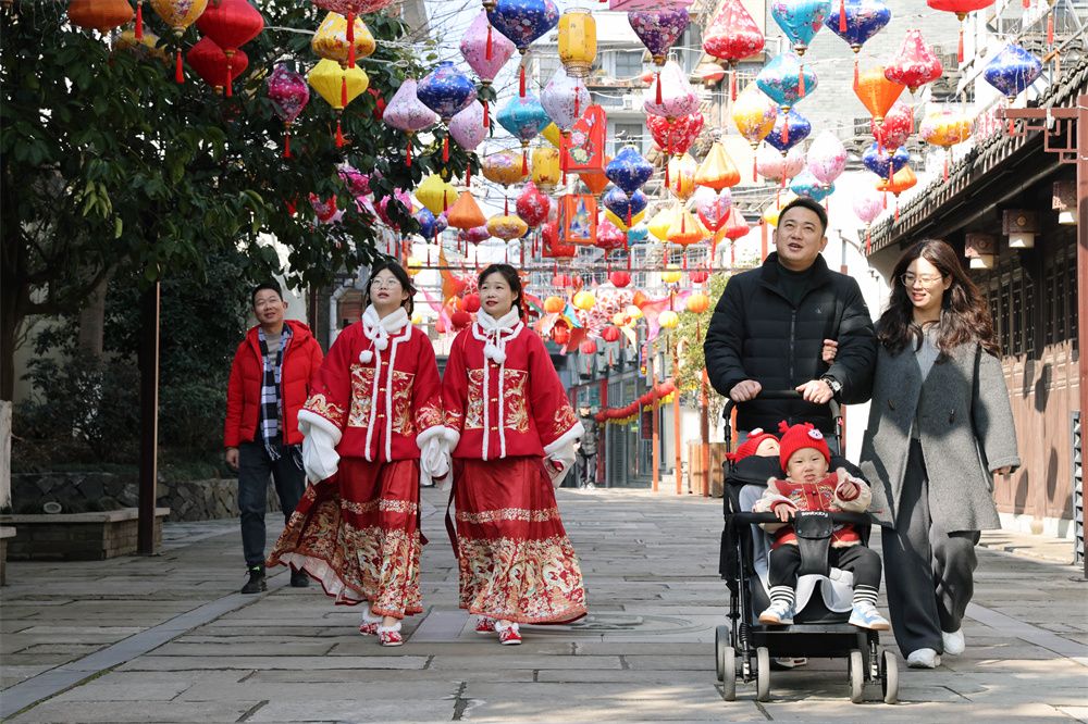 2月10日,游客在浙江省湖州市德清县乾元镇余不弄游玩。(图片来源:新华社)