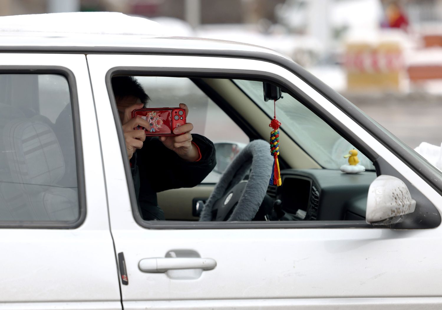 2024年2月21日,降雪之后的北京换“银装”,吸引市民停车拍摄。