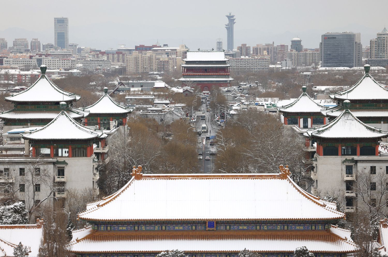 2024年2月21日,站在北京景山远眺北中轴线雪景。