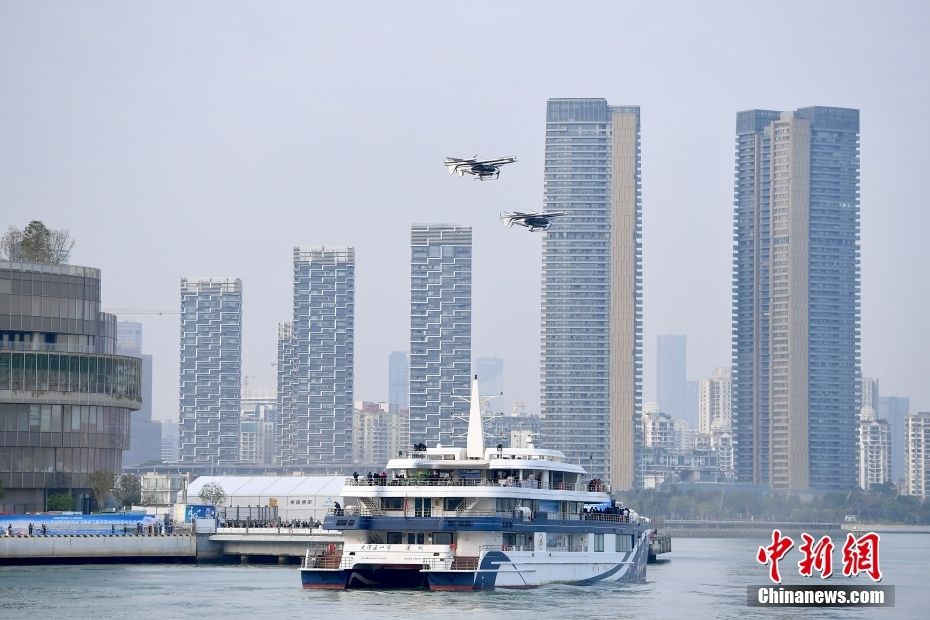 此次活动由峰飞航空科技自主研制的航空器eVTOL——“盛世龙”执飞,模拟从深圳蛇口邮轮母港前往珠海九洲港码头的出行场景。(图片来源:中新网)