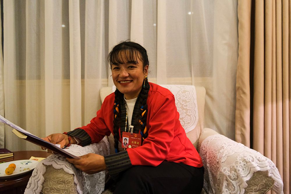 在宾馆见到罗布央宗时,她正和其他全国人大代表商量修改自己的参会资料。“我从有‘莲花秘境’之称的西藏林芝墨脱县而来,从小在雅江边(雅鲁藏布江)、田野里长大,参会搞文案确实压力不小。”3月4日,全国人大代表、西藏自治区林芝市墨脱县墨脱村委会副主任罗布央宗对中新社记者说。