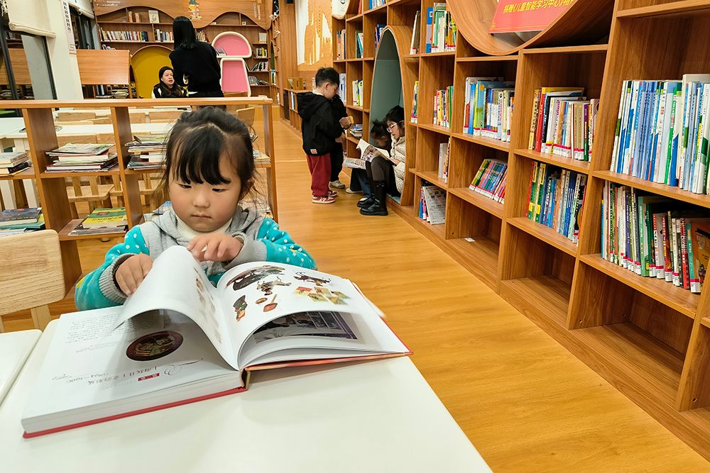 2023年12月22日晚,一位儿童在墨脱县莲花书屋翻阅画册,据悉该书屋有图书上万册,是西藏最大的县级书屋。(图片来源:中新社)