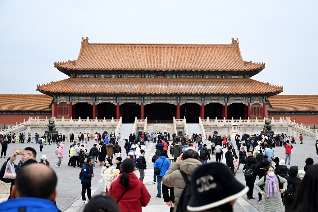 图为众多游客在故宫博物院参观游览。(图片来源:中新社)