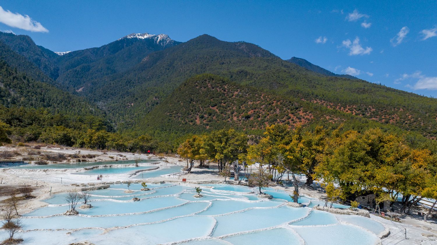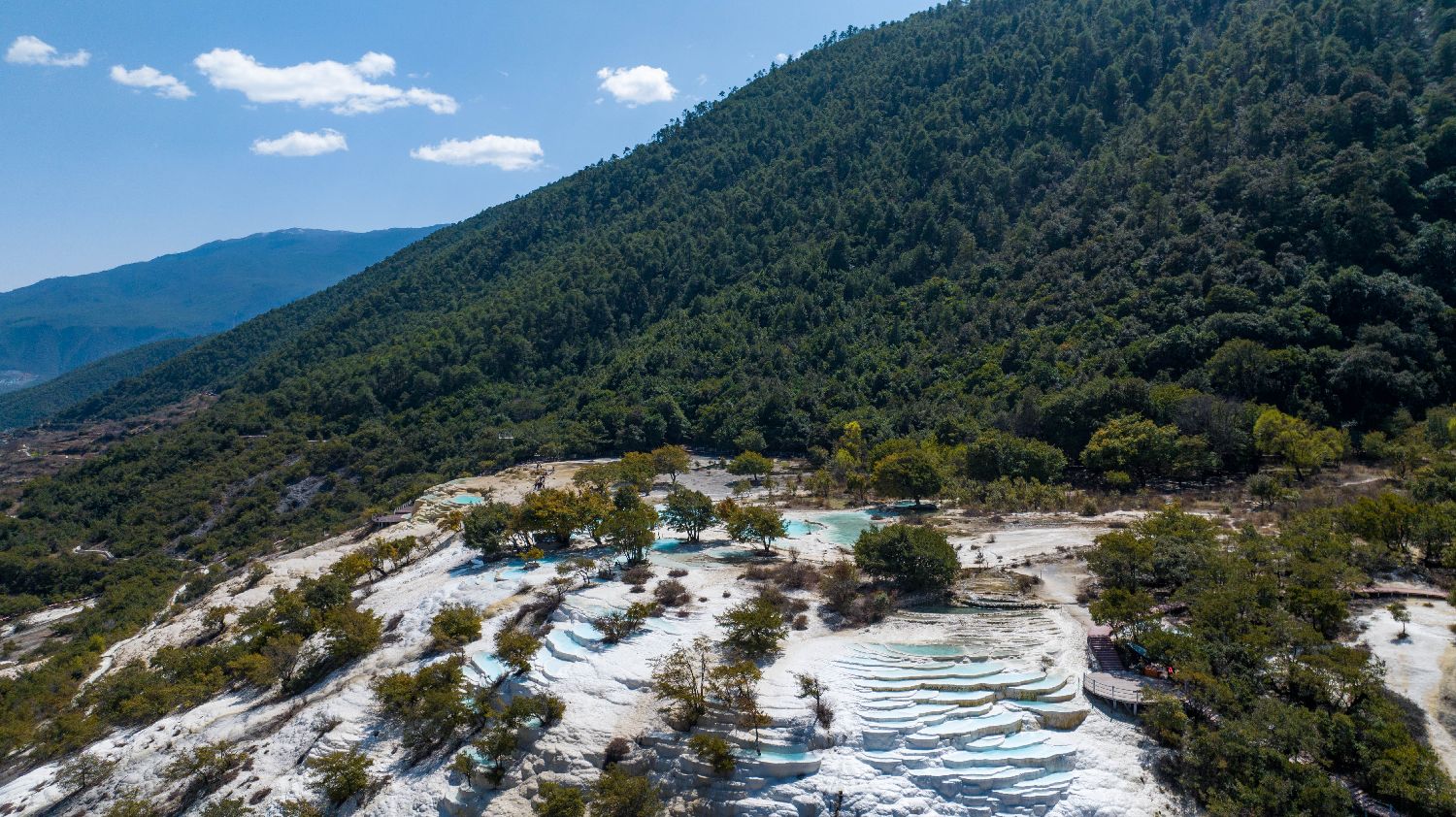 白水台位于云南省迪庆藏族自治州香格里拉市三坝乡,海拔2380米,面积约3平方公里。由于碳酸钙溶解于泉水,形成了白水台如今的自然奇观,被称为“白云遗落在人间的地方”。