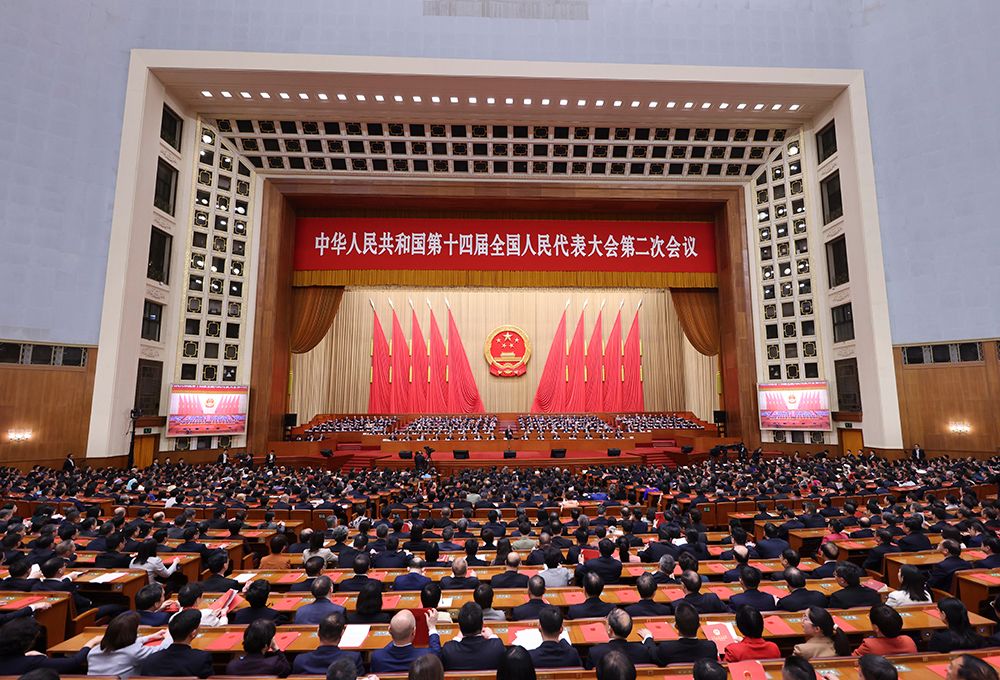 3月11日,十四届全国人大二次会议在北京人民大会堂举行闭幕会。(图片来源:中新社)