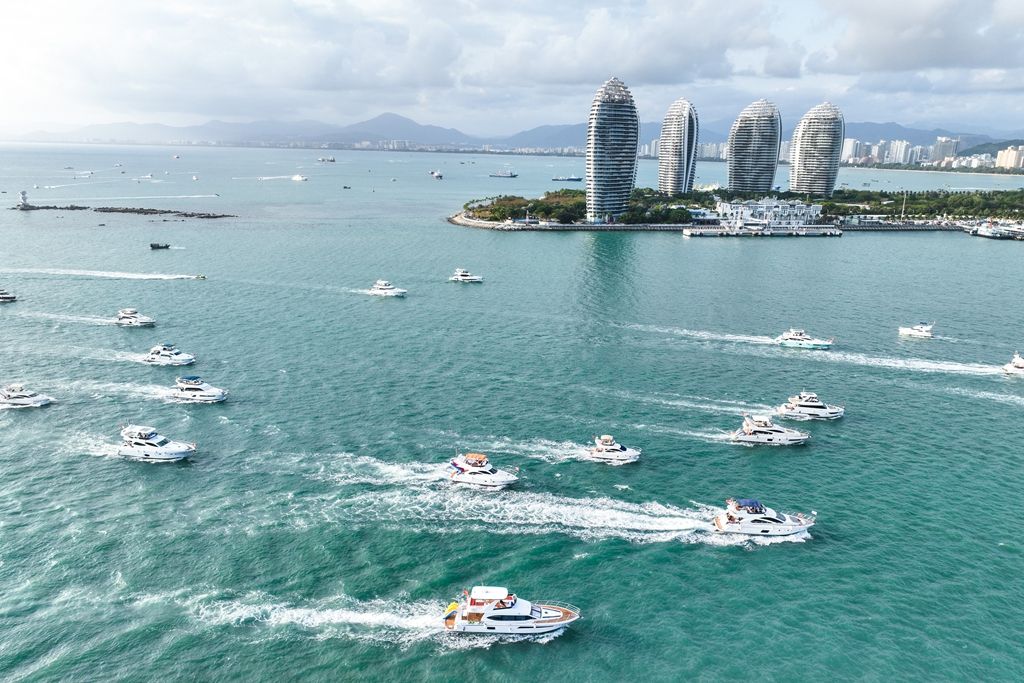 海南三亚游艇码头附近,众多游客乘坐游艇出海体验海上娱乐项目。(图片来源:新华社)