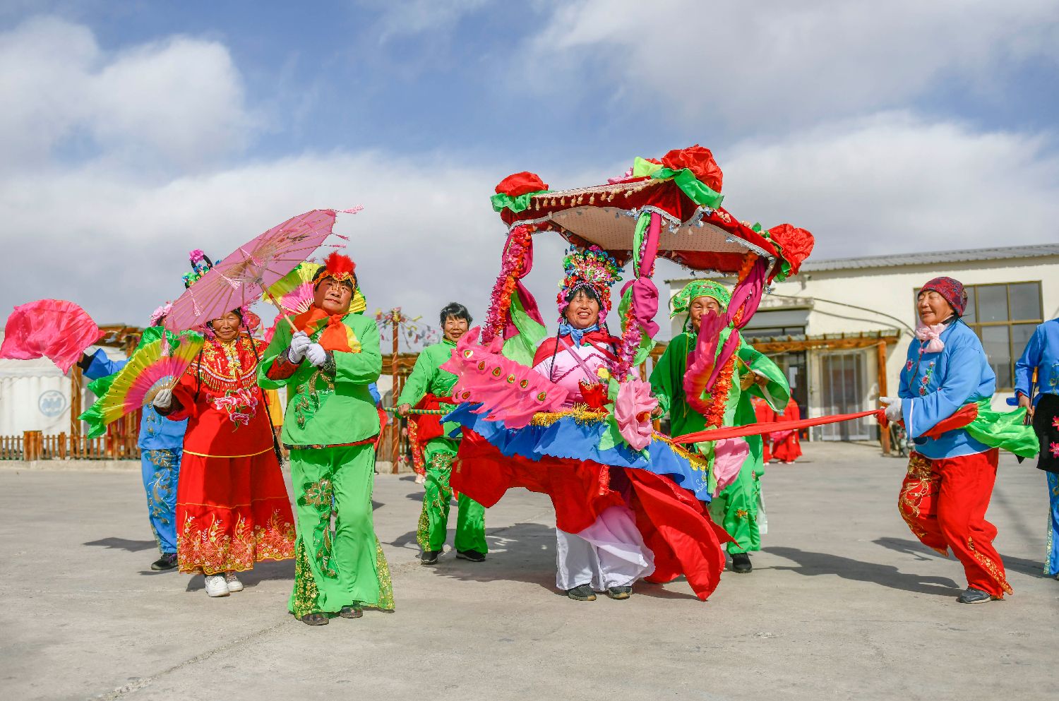 3月19日,河北省遵化市西下营满族乡的民间艺人在表演民俗节目。