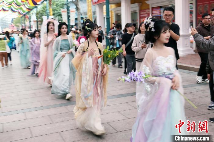 图为身着汉服的年轻女孩引人关注。(图片来源:中新网)