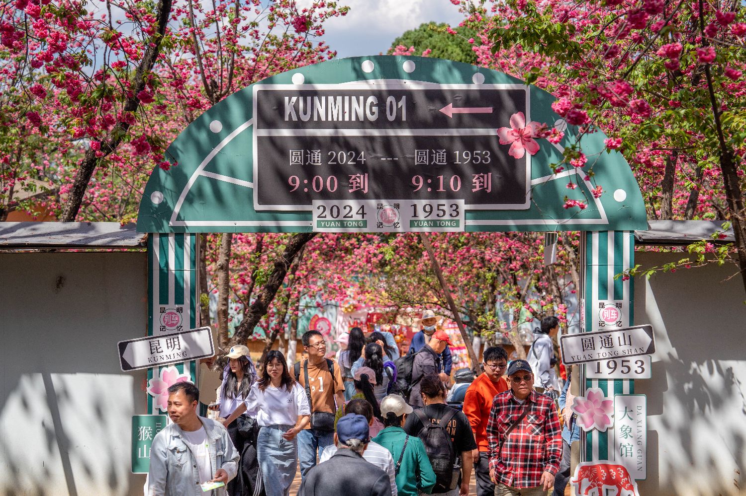 3月24日,游客在昆明圆通山公园观赏樱花。(图片来源:本文图片均据新华社)