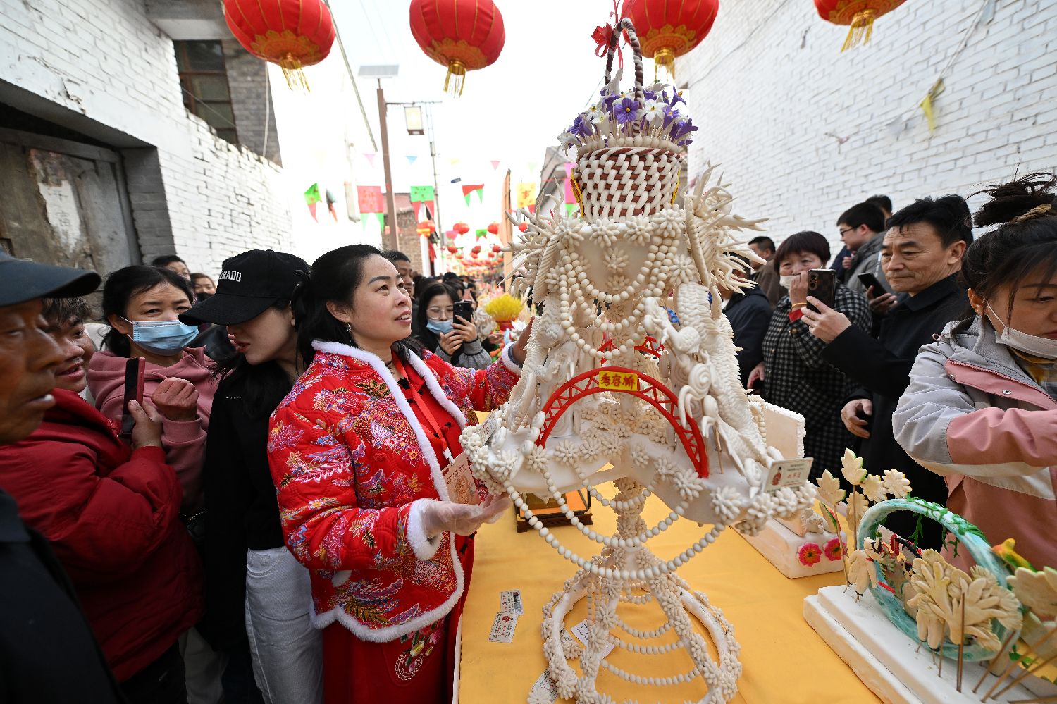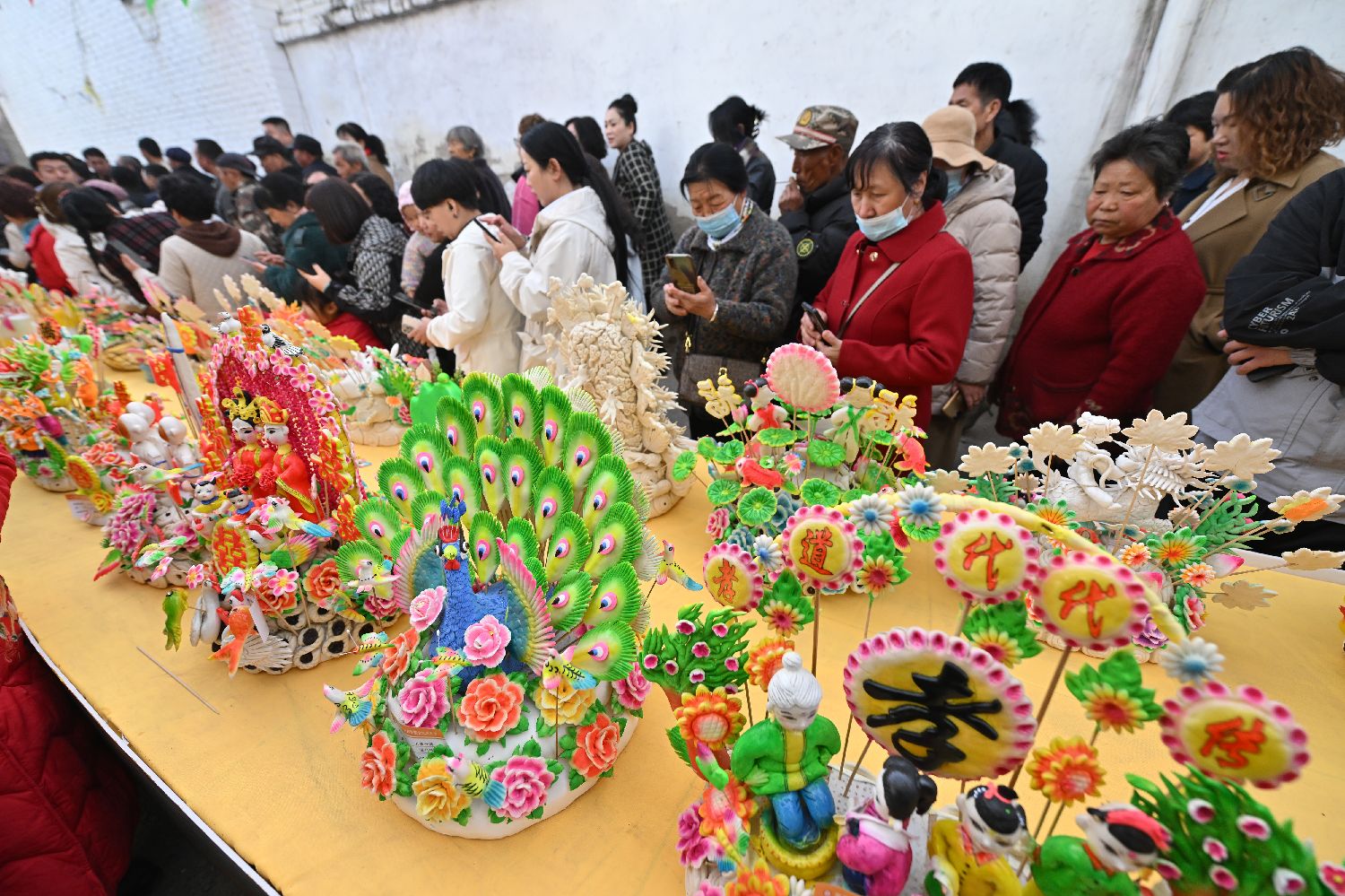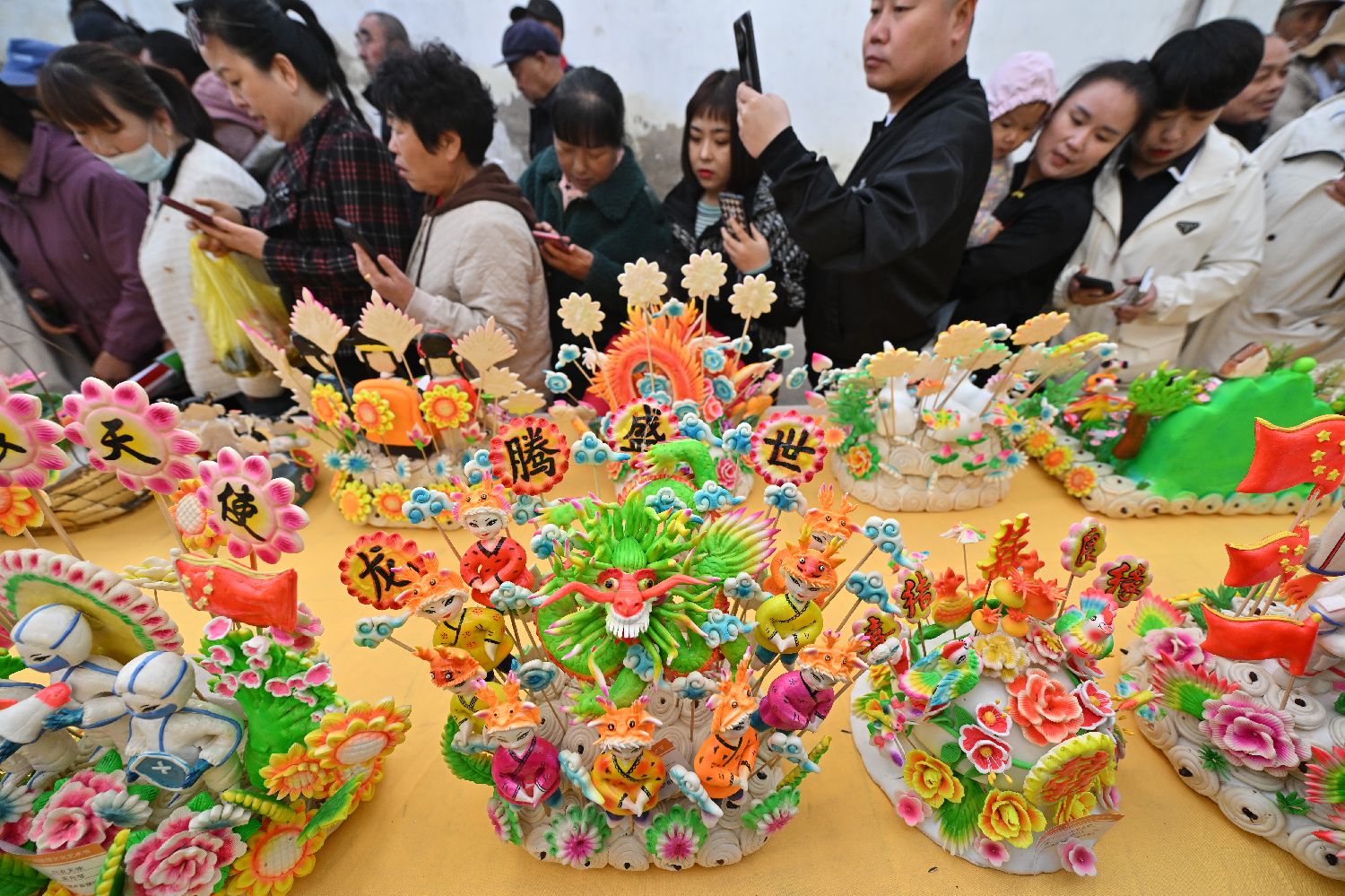 图为3月28日,面塑文化艺术节吸引民众打卡拍照。(图片来源:新华社)