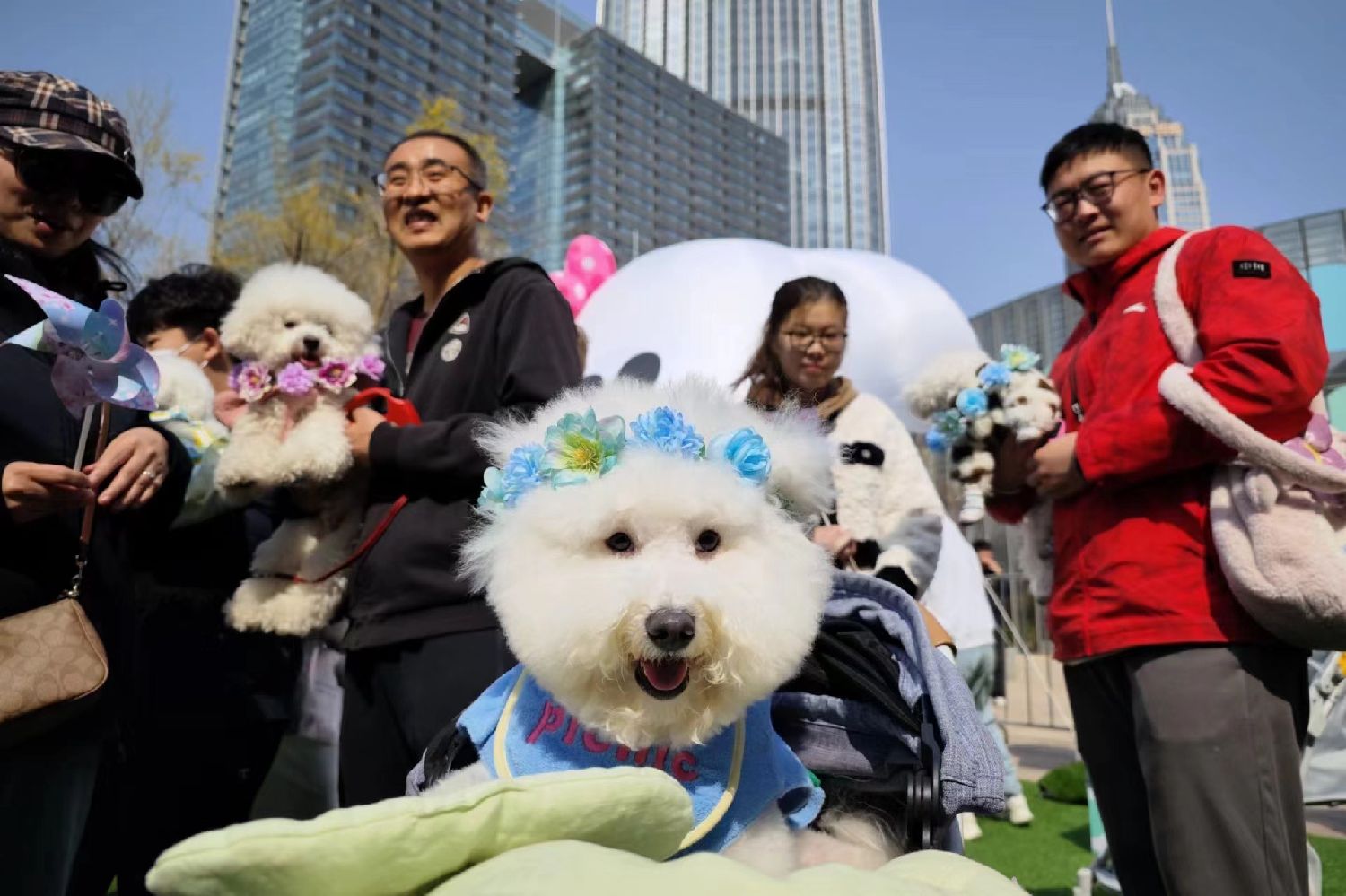 “春天是适合野餐的季节,为了参加今天的聚会,我为我家‘布丁’搭配了写着‘picnic’(野餐)的蓝色小衣服,与和煦的春光和簪花头饰特别搭。”参加活动的宠物主人“布丁姐姐”张女士对中新社记者表示,每个月她为狗狗购买服饰就要花费七八千元(人民币,下同),“我家有一个房间专门装狗狗的衣服,有不少是代购或定制的。每年我会带它参加几次宠物旅游团,还会为它筹办生日派对,一场派对要花费近万元。”