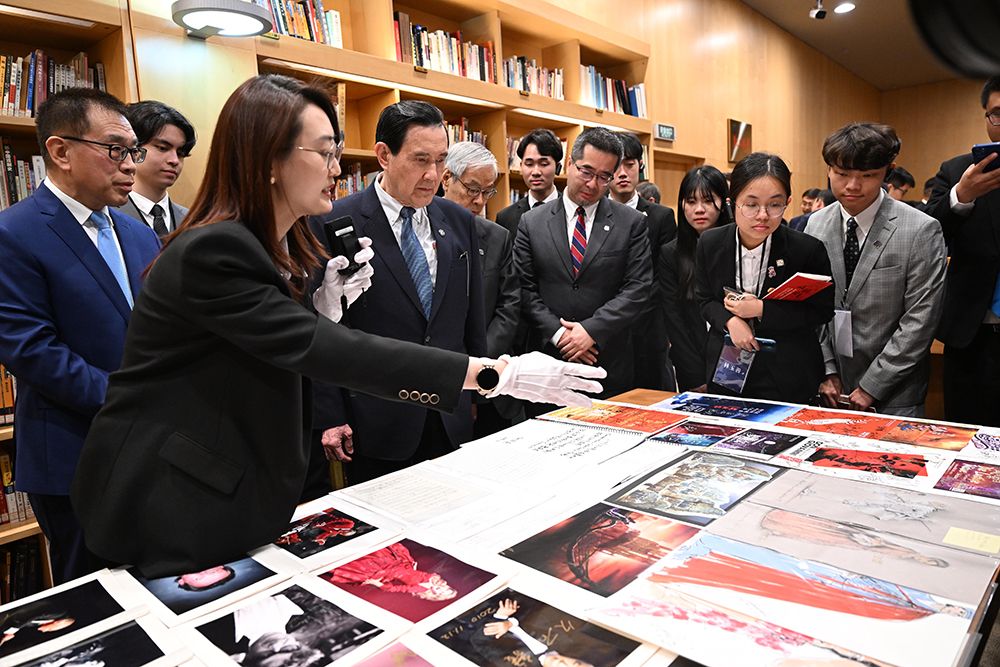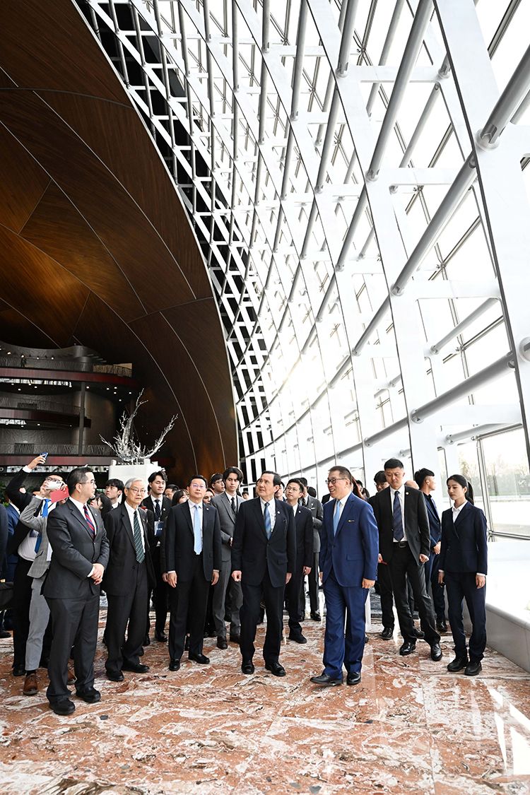 4月7日,马英九率台湾青年一行参观国家大剧院。图为当日,马英九一行在国家大剧院艺术资料中心参观。(图片来源:本文图片均据新华社)