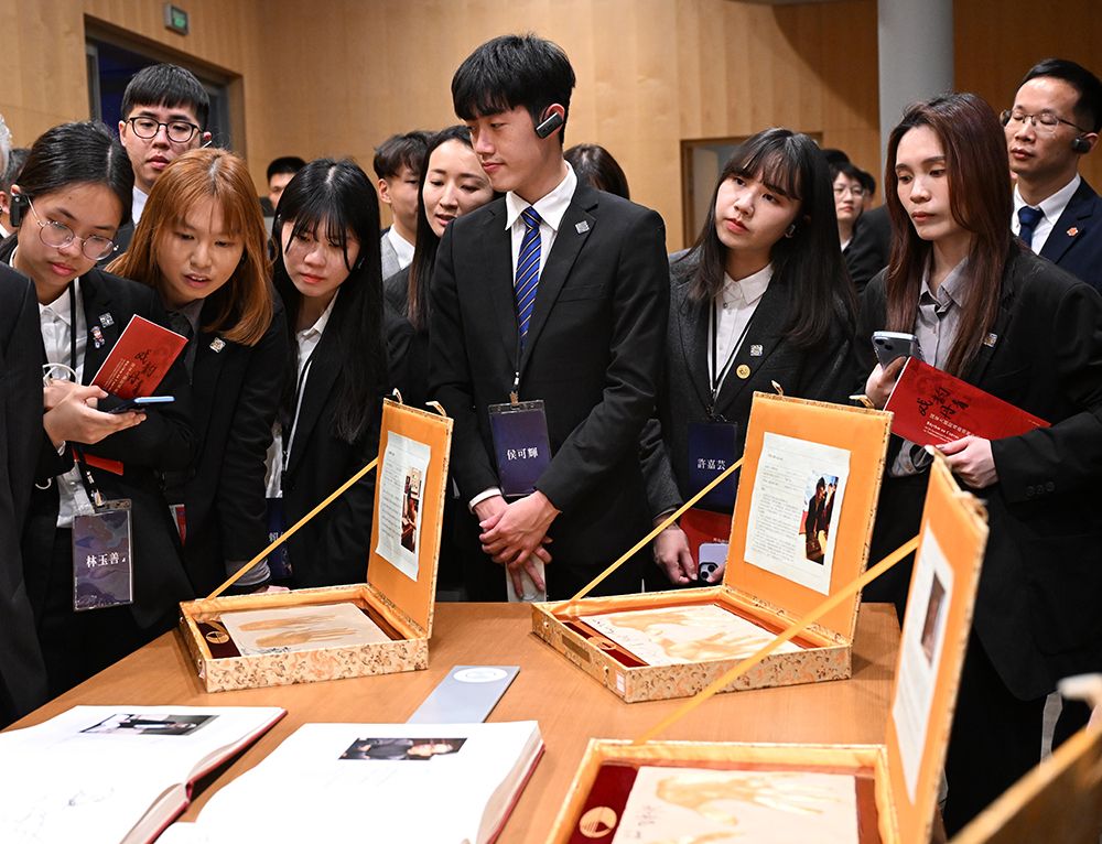 4月7日,随同马英九来访的台湾青年在国家大剧院艺术资料中心参观。