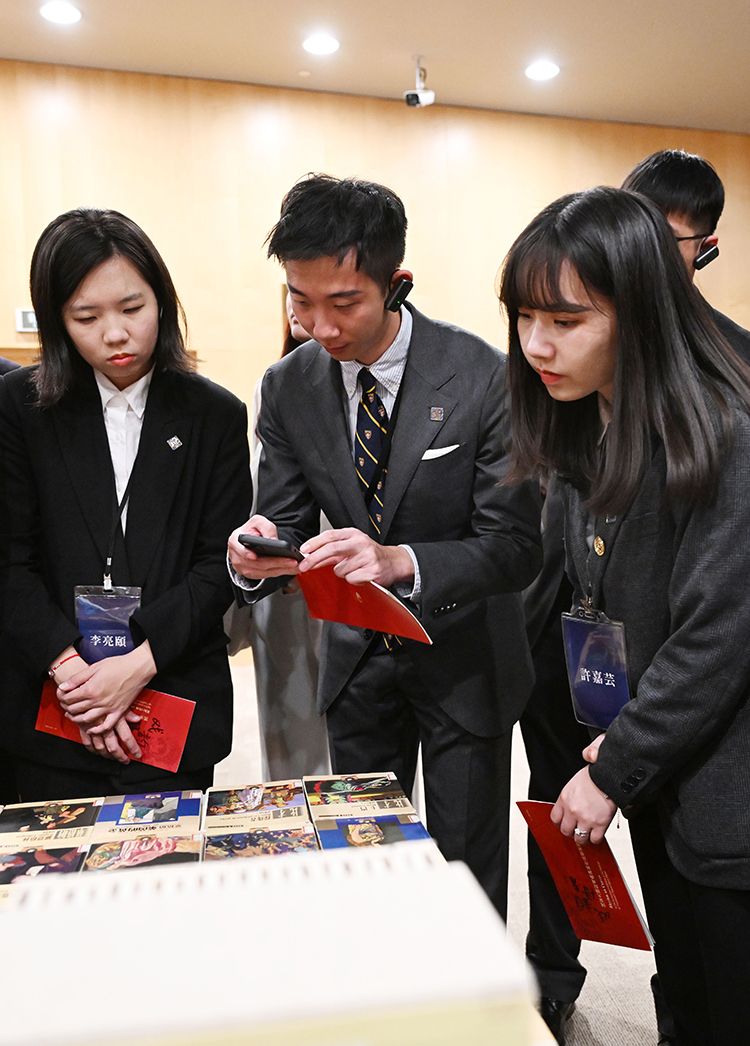随同马英九来访的台湾青年在国家大剧院艺术资料中心参观。