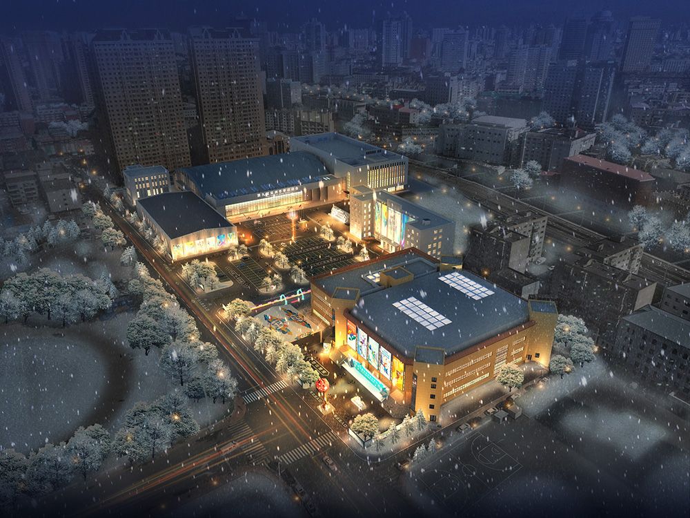 冰球馆夜景效果图。(图片来源:亚冬会执委会供中新社)