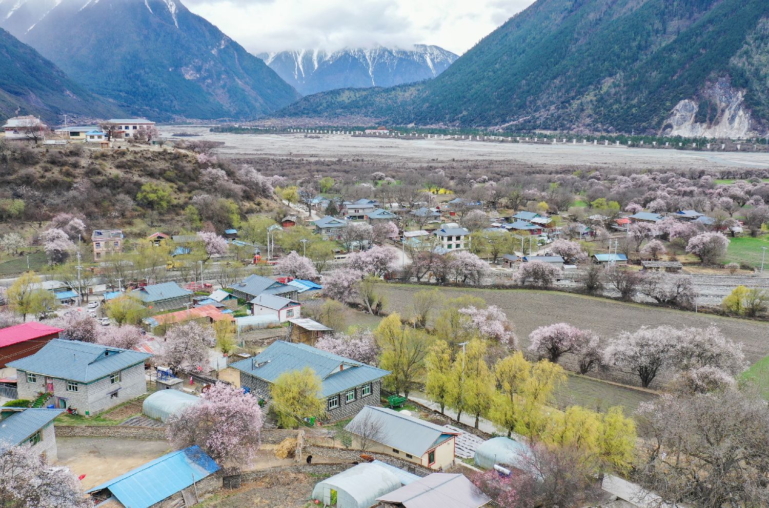 这是林芝市波密县倾多镇的桃林(4月2日摄,无人机照片)。(图片来源:本文图片均据新华社)