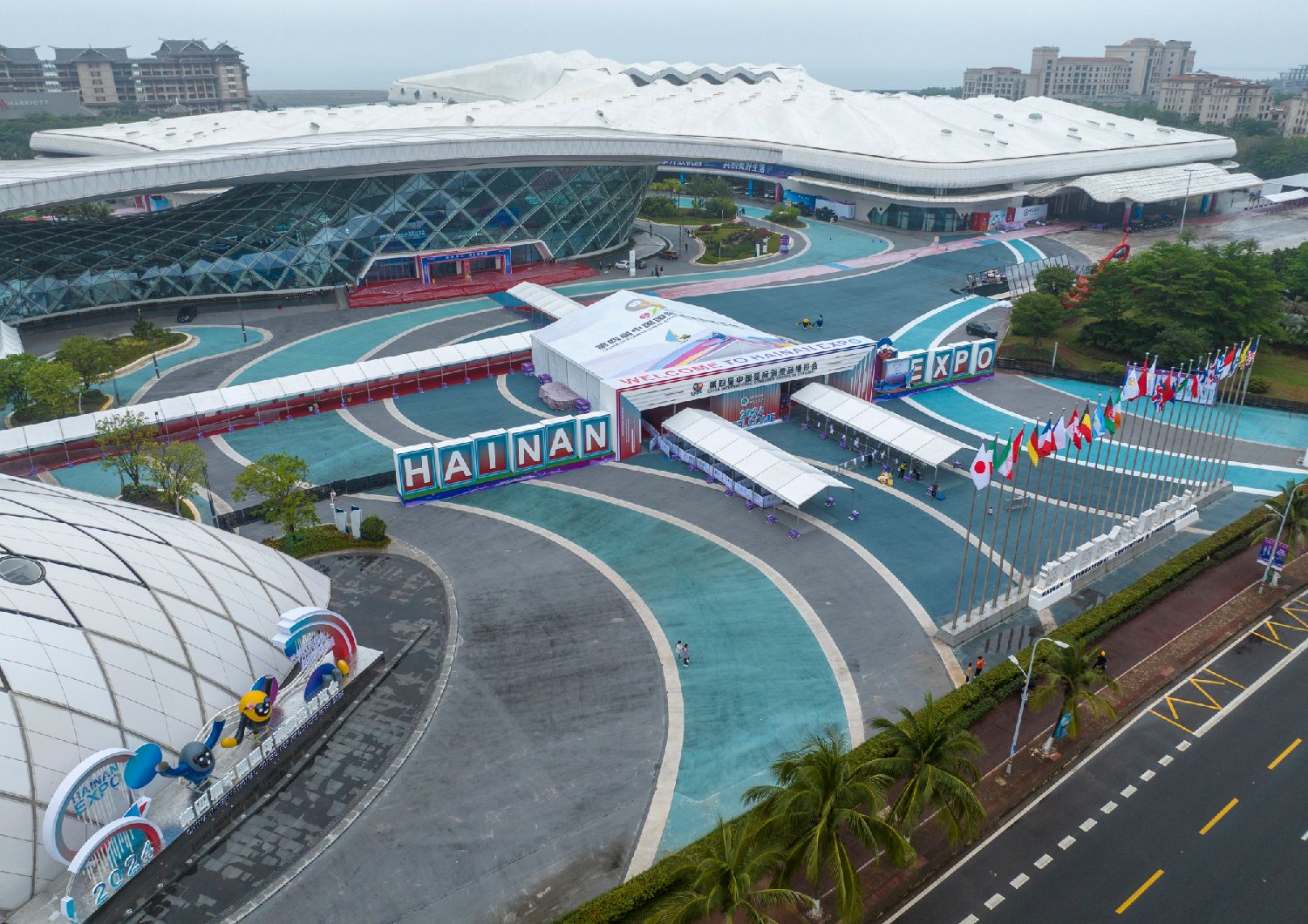 4月10日,航拍第四届中国国际消费品博览会主会场海南国际会展中心。(图片来源:中新社)