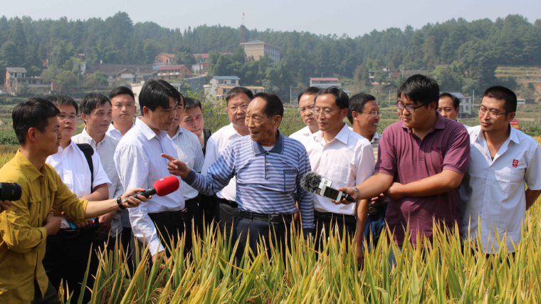 2019年10月12日,在湖南长沙国家杂交水稻工程技术中心,袁隆平接受多家媒体采访。采访中,袁隆平用英语谈非洲国家农业发展问题。