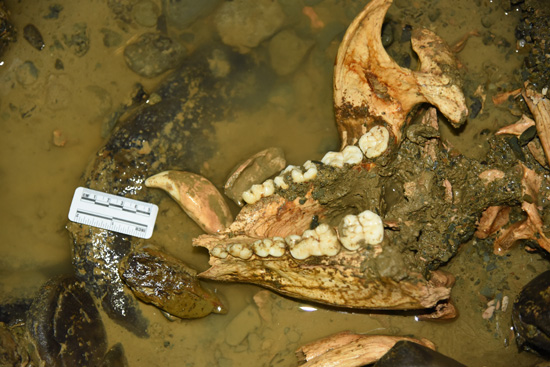 北京大学地球与空间科学学院博士后江左其杲介绍,双河洞中有着丰富的哺乳动物化石资源,除了大熊猫化石外,在此前的科考中还发现有豺、犀牛、黑熊、剑齿象、大灵猫、鬣羚等动物化石。