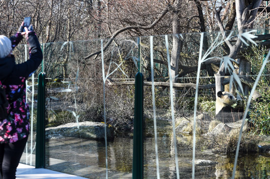 游客在奥地利维也纳美泉宫动物园拍摄大熊猫“阳阳”。