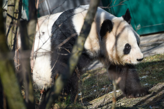 图为2月14日在奥地利维也纳美泉宫动物园拍摄的大熊猫“阳阳”。