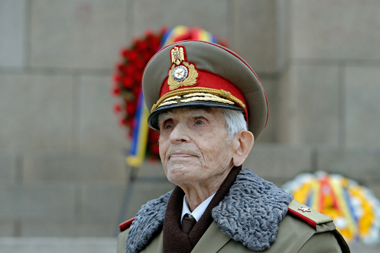 一名罗马尼亚二战老兵在首都布加勒斯特出席老兵节庆祝仪式。