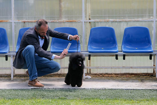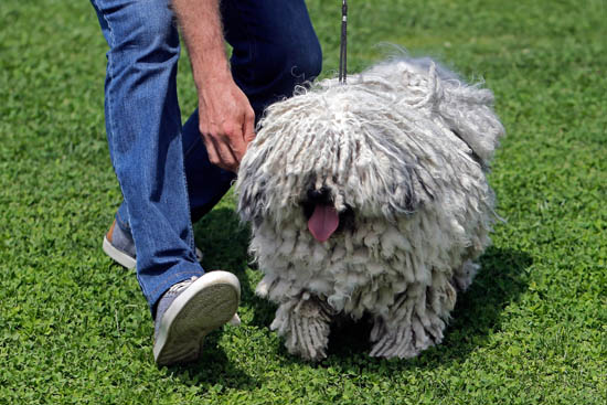 一名男子在罗马尼亚首都布加勒斯特为爱犬参加选美比赛做准备。