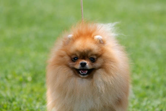 一只博美犬在罗马尼亚首都布加勒斯特参加选美比赛。
