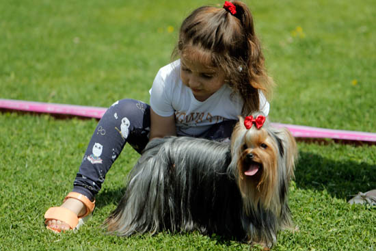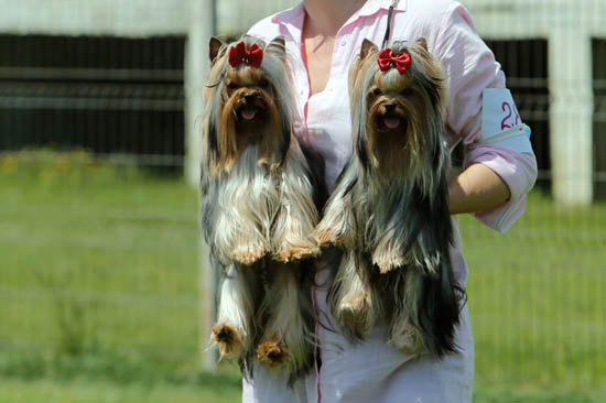 一只约克夏梗犬在罗马尼亚首都布加勒斯特参加选美比赛。