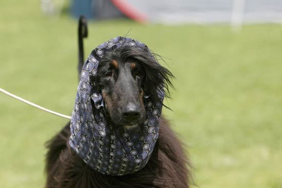 一条阿富汗猎犬在罗马尼亚首都布加勒斯特参加选美比赛。