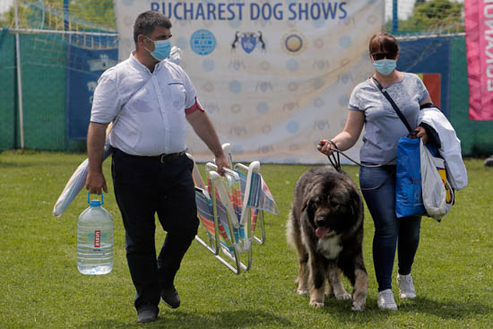5月23日,市民带着爱犬参加在布加勒斯特举行的狗狗选美比赛。随着罗马尼亚疫情好转,各种文化娱乐活动也逐步放开。