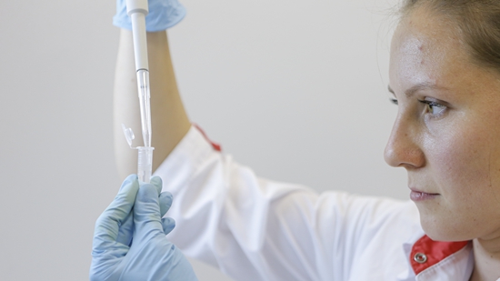 研究人员在实验室内进行研发疫苗工作。(图片来源:新华社)