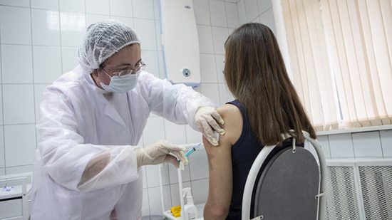 医护人员为一名志愿者接种疫苗。(图片来源:新华社)