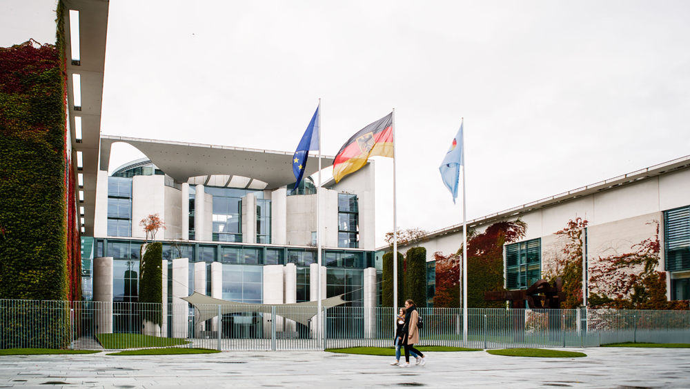 图为10月15日拍摄的德国总理府。(图片来源:新华社)