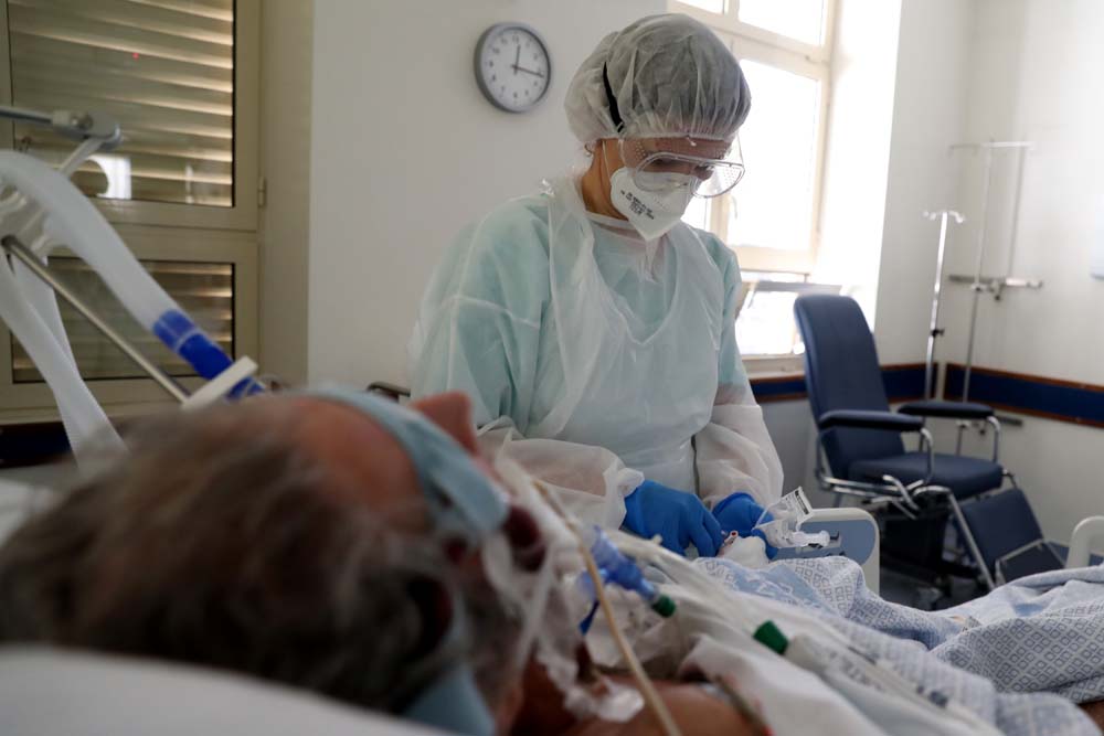 图为医务人员在葡萄牙里斯本一所医院照料新冠患者。(图片来源:新华社)