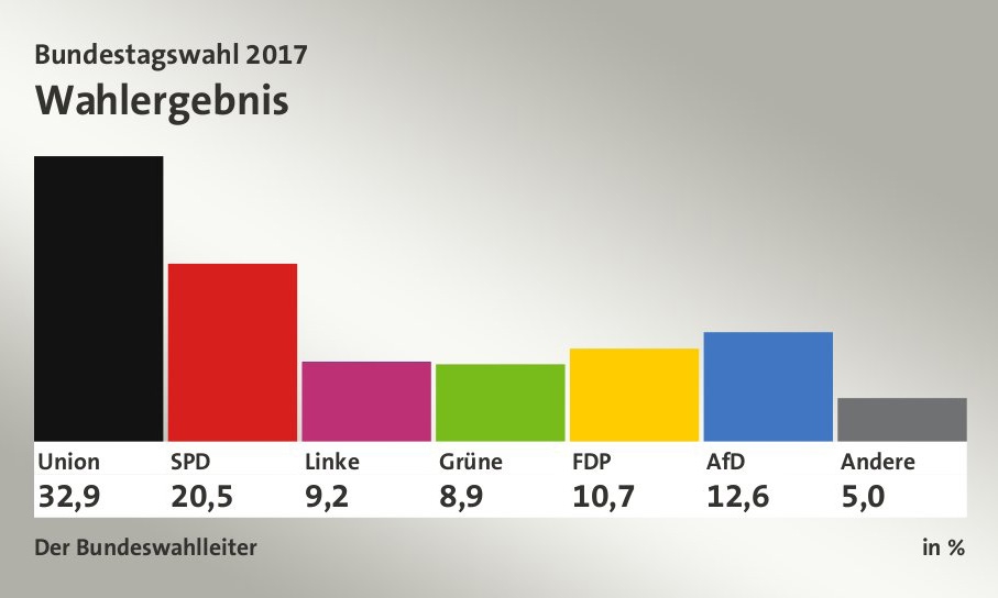 在6个能超过5%门槛进入联邦议院的政党中,德国选择党因其右翼民粹纲领,被其他党派宣布为不结盟对象,而左翼党也被一些党派排除出结盟伙伴之列。所以,剩下5党,有7种结盟组阁可能,按目前民意,其中4种超过半数,3种接近半数。