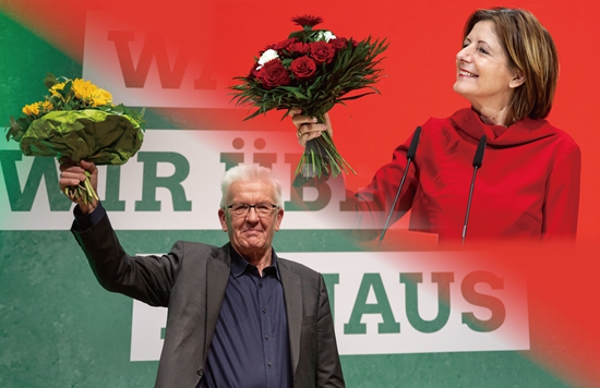 德国西南两州州议会选举尘埃落定,绿党和社民党分别保住了自身在巴符州和莱法州第一大党的地位。巴符州绿党籍州长克雷奇曼(Winfried Kretschmann,图中左下)和莱法州社民党籍州长德雷尔(Malu Dreyer,图中右上)都顺利连任。民调显示,两位州长的个人政治魅力在本次州议会选举中起到了至关重要的作用。(图片来源:欧洲时报德国版制图)