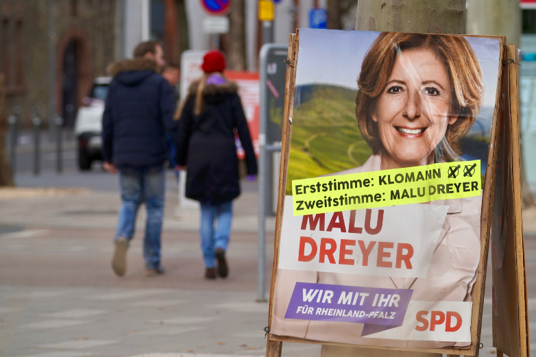 3月14日,德国“超级选举年”正式开启,图为莱法州首府美因茨街头的选举广告。(图片来源:中新社)