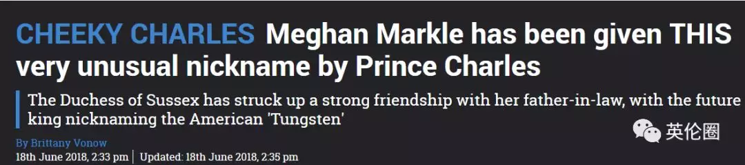 之所以给梅根起这个昵称,是因为查尔斯认为梅根有如“钨”一般强硬和不屈的性格。
