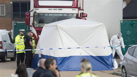 新华社报道,2019年10月23日,英国警方在英格兰东南部埃塞克斯郡一个工业园区内的一辆集装箱货车里发现39具遗体,后确认遇难者均为越南公民。