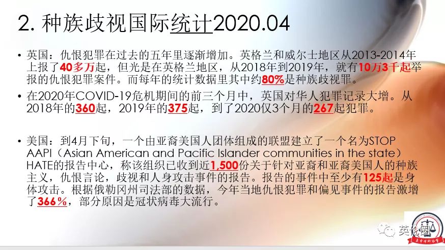 在2020年新冠危机期间的前三个月中,英国对华人犯罪记录大增。从2018年的360起,2019年的375起,到了2020仅3个月的267起犯罪。