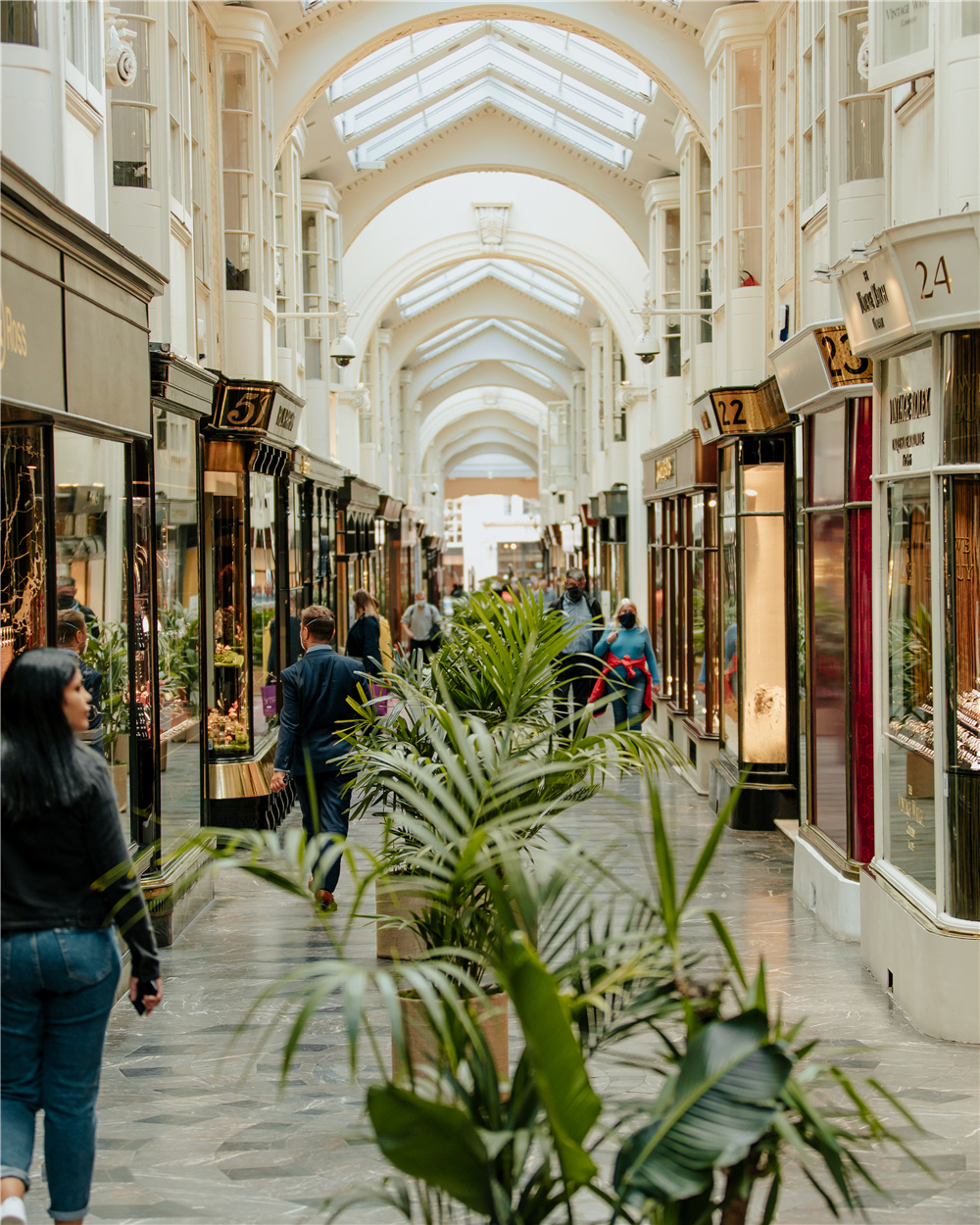伯灵顿拱廊内部,植物在中间做隔离,分开两侧的行人。(图片来源:伯灵顿官网)