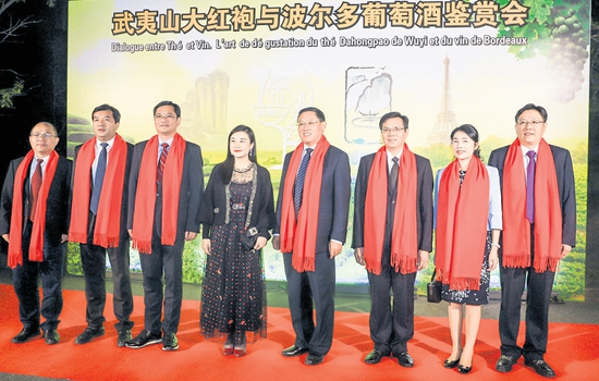 今年是中法建交55周年,也是中法关系“黄金时代”深入发展之年,为进一步落实中法两国共同发表的《中法关系行动计划》,11月15日,在第十三届海峡两岸茶业博览会上,法国波尔多代表团应邀走进福建南平武夷山市,双方共同举办“茶·酒对话”武夷山大红袍与波尔多葡萄酒鉴赏交流会,以“武夷茶”和“葡萄酒”为媒,促进两地深入交流、增进友谊,探讨合作共赢的机遇,促进两国文化的交流与发展。此活动由欧洲时报文化传媒集团协办。