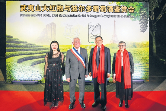 法国梅多克地区政府联盟主席、凯阳市市长让-布莱斯·亨利,波尔多市政府办公厅主任蒂埃里·罗依拉德,波尔多葡萄酒协会副主席、波尔多布隆代尔酒庄庄主让-诺埃尔·贝洛克,法国波尔多康泰颂酒业集团董事长、法国波尔多美域酒庄庄主王腾;欧洲时报社长助理刘勇;海峡两岸茶业交流协会高级顾问庄先,南平市领导袁毅、伍斌、庄莉、丘毅、林旭阳、何明星,及武夷山茶业界代表参加活动。