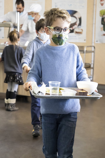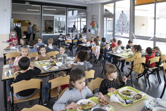 12月10日,孩子们在法国南部小城比奥的一所学校取餐。(图片来源:本文图片均据新华社)