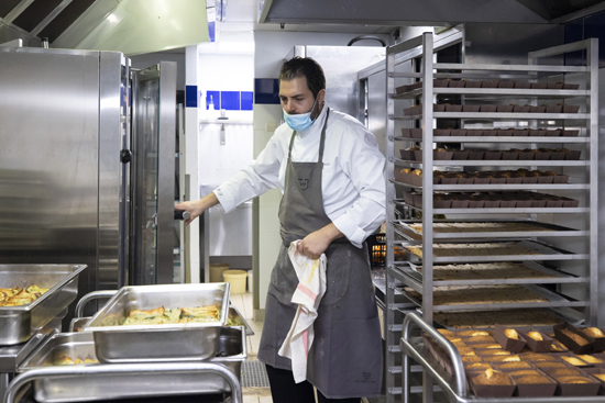 厨师米夏埃尔·富尔奇在法国南部小城比奥的一所学校忙碌。