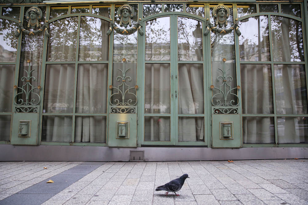 2020年10月30日,法国巴黎 “封城”后,香榭丽舍大街的一家甜品店外门可罗雀。(图片来源:新华社)