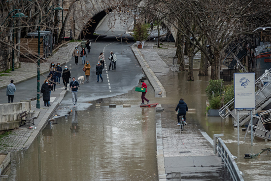 巴黎连续降雨 塞纳河水上涨