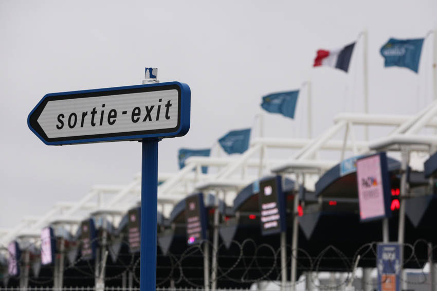 法国加来港海关检查站前的“出口”标识。(图片来源:新华社)