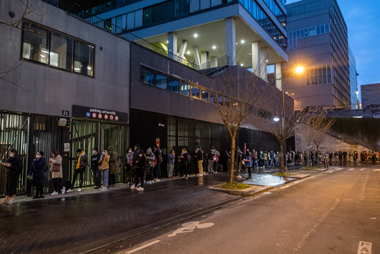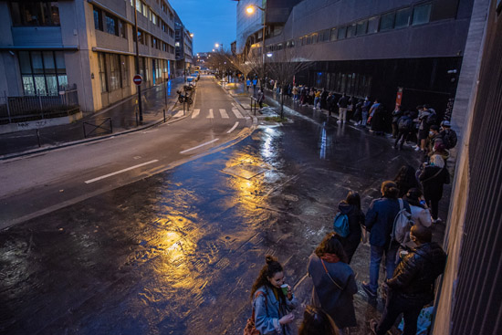 2月22日,在法国巴黎,学生排队等待领取免费食品。(图片来源:本文图片均自新华社)